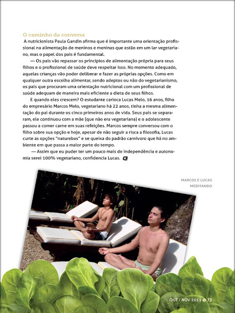 Anos depois, procurando na banca revistas de receitas vegetarianas conheci a Revista dos Vegetarianos. Passei a comprá-la todos os meses e foi aí que vi que nao era só Greenpeace que existia, conheci o George e o movimento por todos os animais e nao só por cachorros e baleias. Pesquisando percebi que nao comer carne nao significava nada. Parei de comprar leite e ovos. Nessa altura o meu filho se decidira sozinho a parar com carne e ficou preocupado quando disse que nao compraria mais leite nem ovo, mas mais uma vez nao impus à ele parar tbem, poderia comer na rua.