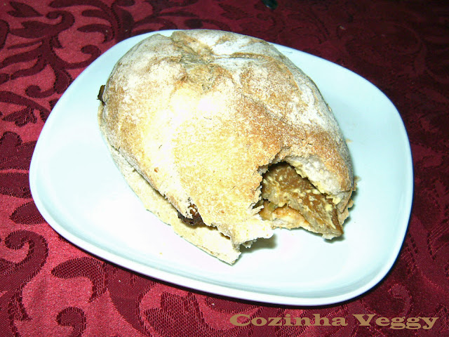 No fim só falta abrir o pão ainda quente barra-lo com mostarda e colocar um belo bife de seitan.