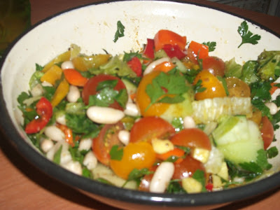 Fiz a salada em cru, até me esqueci de dizer que pus 1 pimento vermelho 😉😊😉 Temperei com azeite do bom, limão e orégãos 😉❤😘